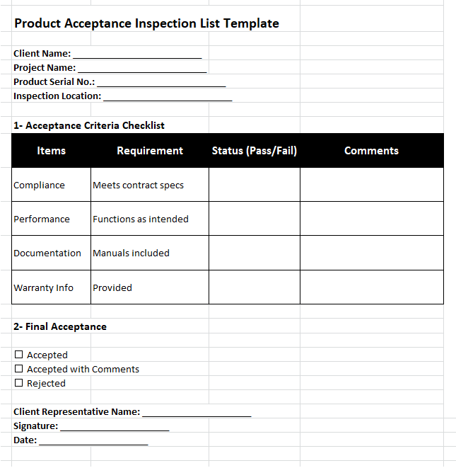 A free product inspection list template is employed as a list that shows physical proof which explains the specific equipment or system is totally immune and can be purchased without any suspicion. More than that, this list is also known as a formal or official product examination list that is created after taking measures to check the quality, performance and reliability of the products. To do so, it provides a checklist of different activities and comparisons that need to be performed on raw materials before marking these products as “ready for sale.” All product inspection list templates are different and dramatically vary from their types, but the ultimate purpose of these lists is to remain the same and illustrate each and every detail about the condition and value of products after diverse tests.
